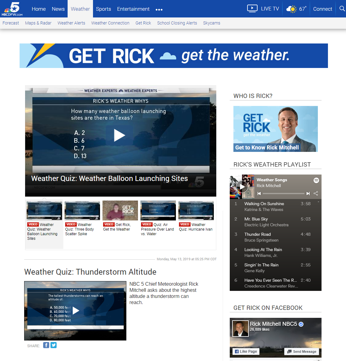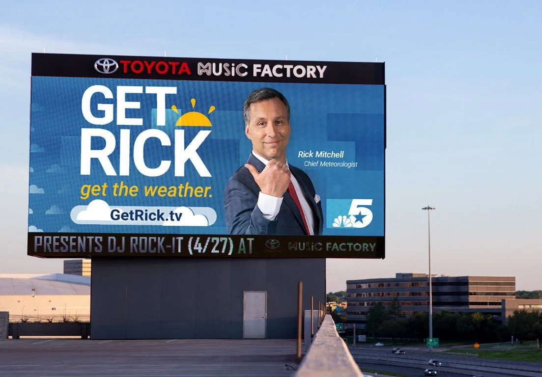 In 2018 NBC 5 kicked off a new era by awarding Rick Mitchell with the position of Chief Meteorologist. The “Get Rick, Get the Weather” campaign launch introduced Rick to the community and showcased his love for all things weather. The 360° image campaign touched on print, digital, social, premium, on-air, billboard, and local activations.